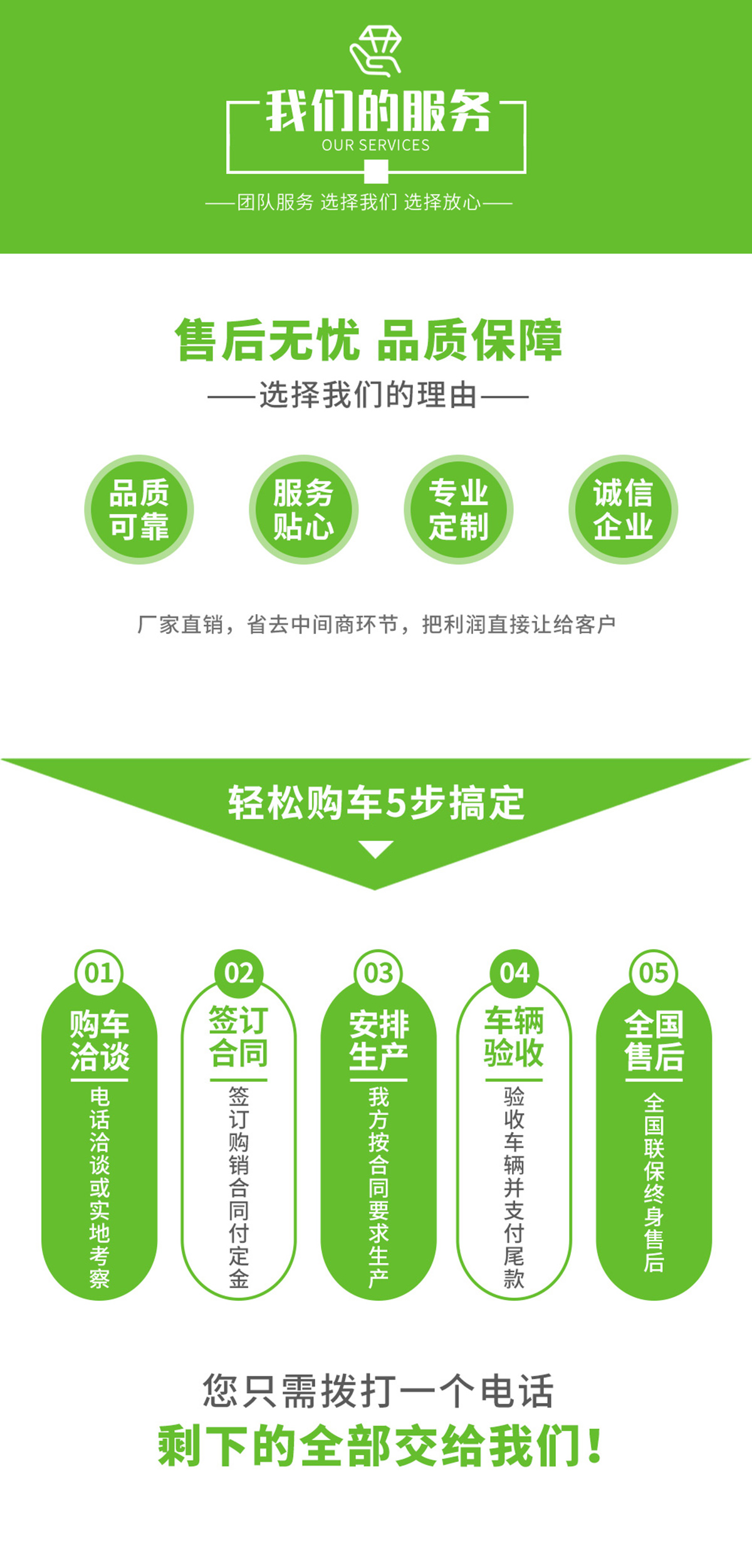 ·創優質服務企業; 造用戶滿意產品; 樹國內知名品牌!公司堅持以“質量求生存、信譽求發展、科技創新路、服務創品牌”的經營理念,以“誠信、務實、創新、進取”為企業宗旨,不斷提升自身產品質量,開發適應市場需求物美價廉的多功能專用汽車! 我們將謁誠為您提供更好、更快、更優質的服務!